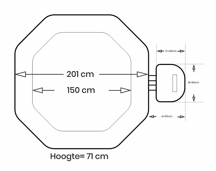 Hiermee dek je de spa af als je hem niet gebruikt. De spacover is opblaasbaar en past precies in de spa, zodat het beter isoleert. Zo blijft de opgebouwde warmte van het water beter op temperatuur. Daarnaast is je water beschermd tegen vuil van buitenaf. Met de hoes die je over de spa met cover trekt is het geheel netjes afgedekt.